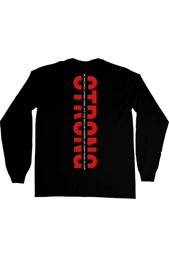 Bold, minimal, and purpose-driven. The 5 STRONG Vertical Pillars Long Sleeve features a striking vertical design that represents strength, faith, and discipline lived out daily. Clean black fabric with powerful red typography makes this piece a statement of identity—not just style. Designed for men who stand firm, lead boldly, and live the standard.